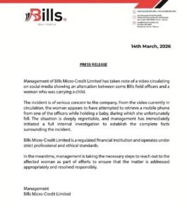 Bills Micro-Credit Investigates Viral Incident Between Staff and Woman Carrying Baby