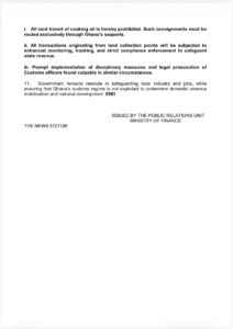 As an immediate policy response, government announced that all land transit of cooking oil through Ghana is prohibited and that such consignments must be routed exclusively through the country’s seaports. Authorities also indicated that monitoring and tracking of transactions originating from land collection points will be intensified to safeguard state revenue.