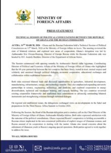During the engagement, the Ghanaian delegation also requested Russia’s cooperation in holding accountable a Russian citizen alleged to be involved in the non-consensual publication of explicit images of Ghanaian women. Russia assured Ghana of its cooperation in addressing the matter.