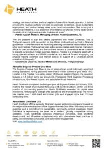 “We are pleased to sign this offtake agreement with Heath Goldfields. This is Trafigura’s second gold transaction on the African continent and our first in Ghana’s gold sector- a market where we have long-standing commercial relationships across other commodities. Trafigura has been active across metals and minerals markets in Africa for over two decades, and the continent remains a cornerstone as we continue to expand our precious metals business. Bogoso-Prestea is a producing asset with a strong operational team and LMA compliance, and we look forward to applying our physical trading expertise and market access in support of a Ghanaian-owned operation of this quality.“he said