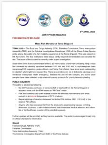 Tema is a critical node in Ghana’s fisheries and maritime economy. Any disruption, even temporary has implications for fishermen, traders, exporters, and food supply chains. While authorities emphasize there is no confirmed public health crisis, the situation underscores the importance of environmental monitoring and rapid response mechanisms in coastal industrial zones.