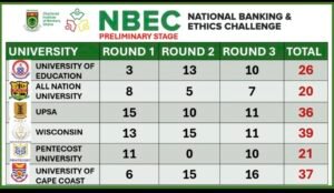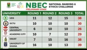 Organised by the Chartered Institute of Bankers (CIB) Ghana, the NBEC aims to promote financial literacy, ethics, and professional standards among university students in Ghana’s financial sector. This year’s edition saw the twelve participating institutions divided into two groups of six, with the top three from each group advancing to the next stage.